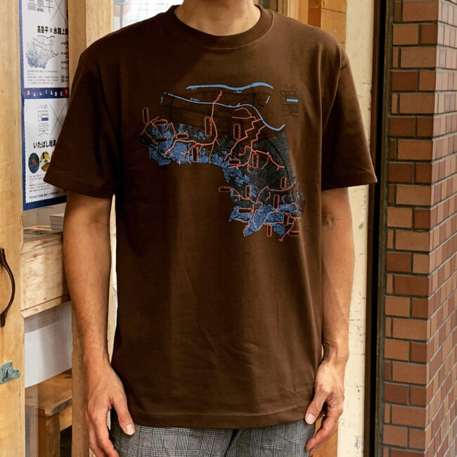 板橋区の暗渠地図をイラスト化した、その名も「いたばし暗渠Tシャツ」。