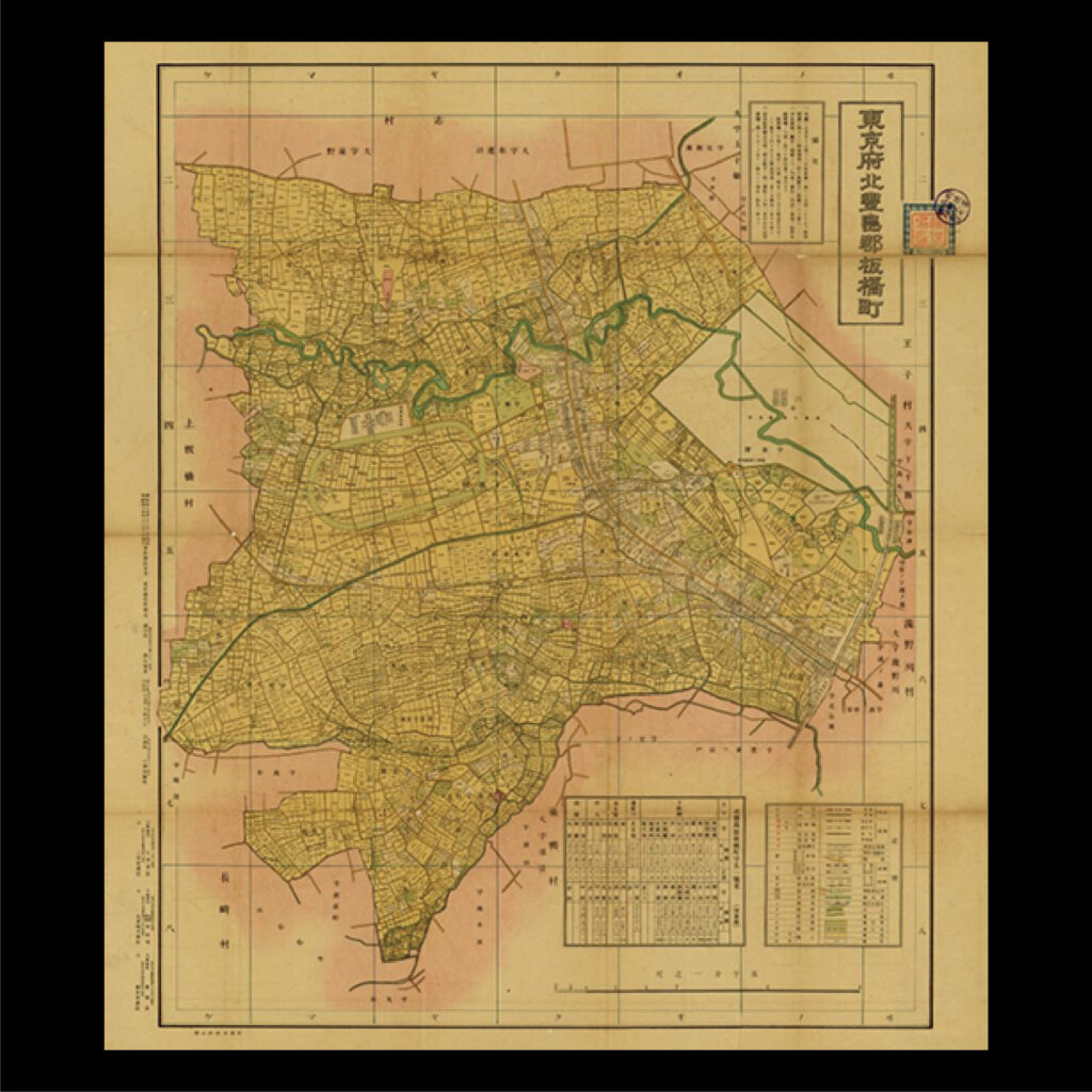 1932年、東京府北豊島郡板橋町、上板橋村、志村、赤塚村、練馬町、上練馬村、中新井村、石神井村、大泉村の9町村が東京市に編入され、その区域を板橋区と定めました(1947年に区域の一部が練馬区として分区)。